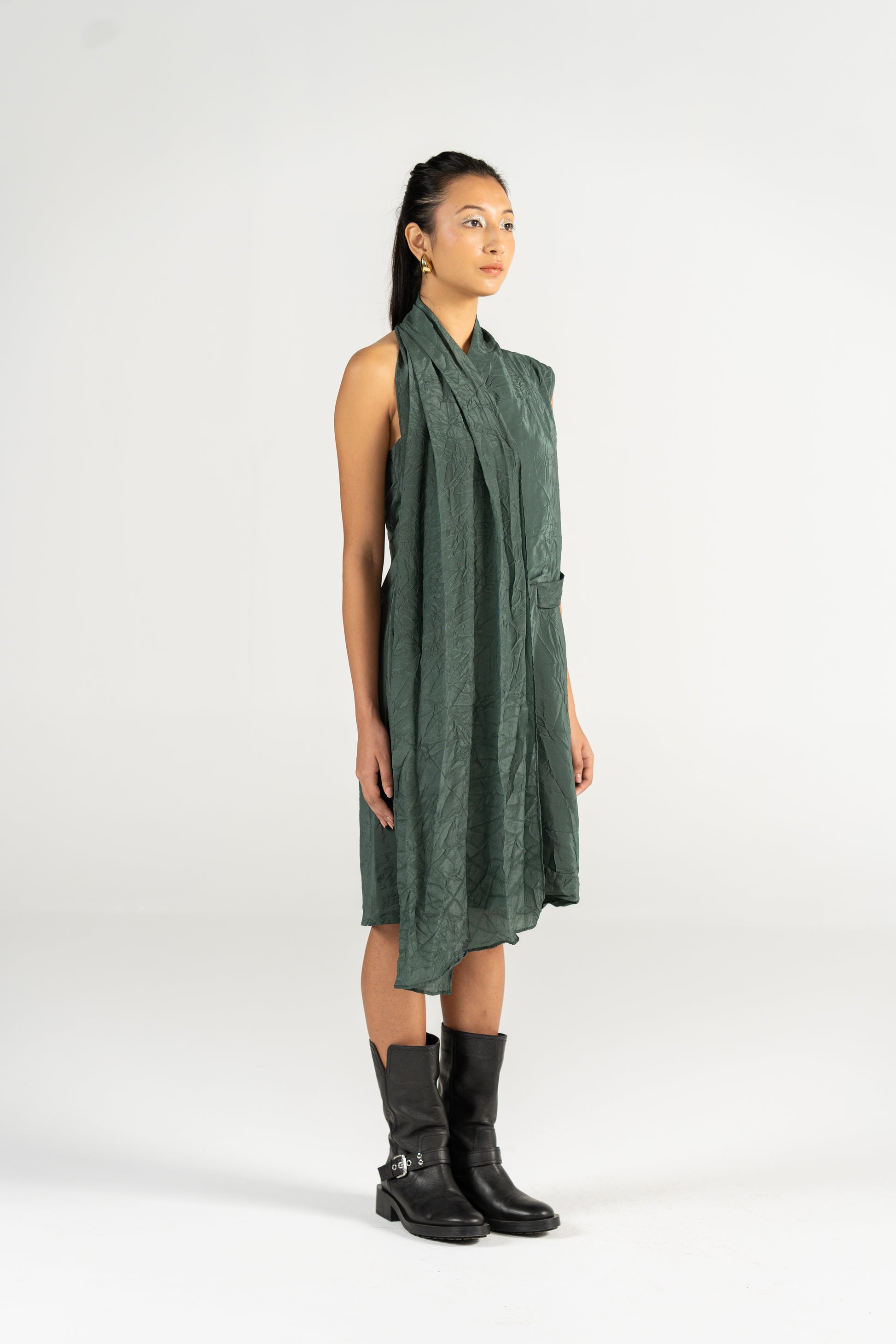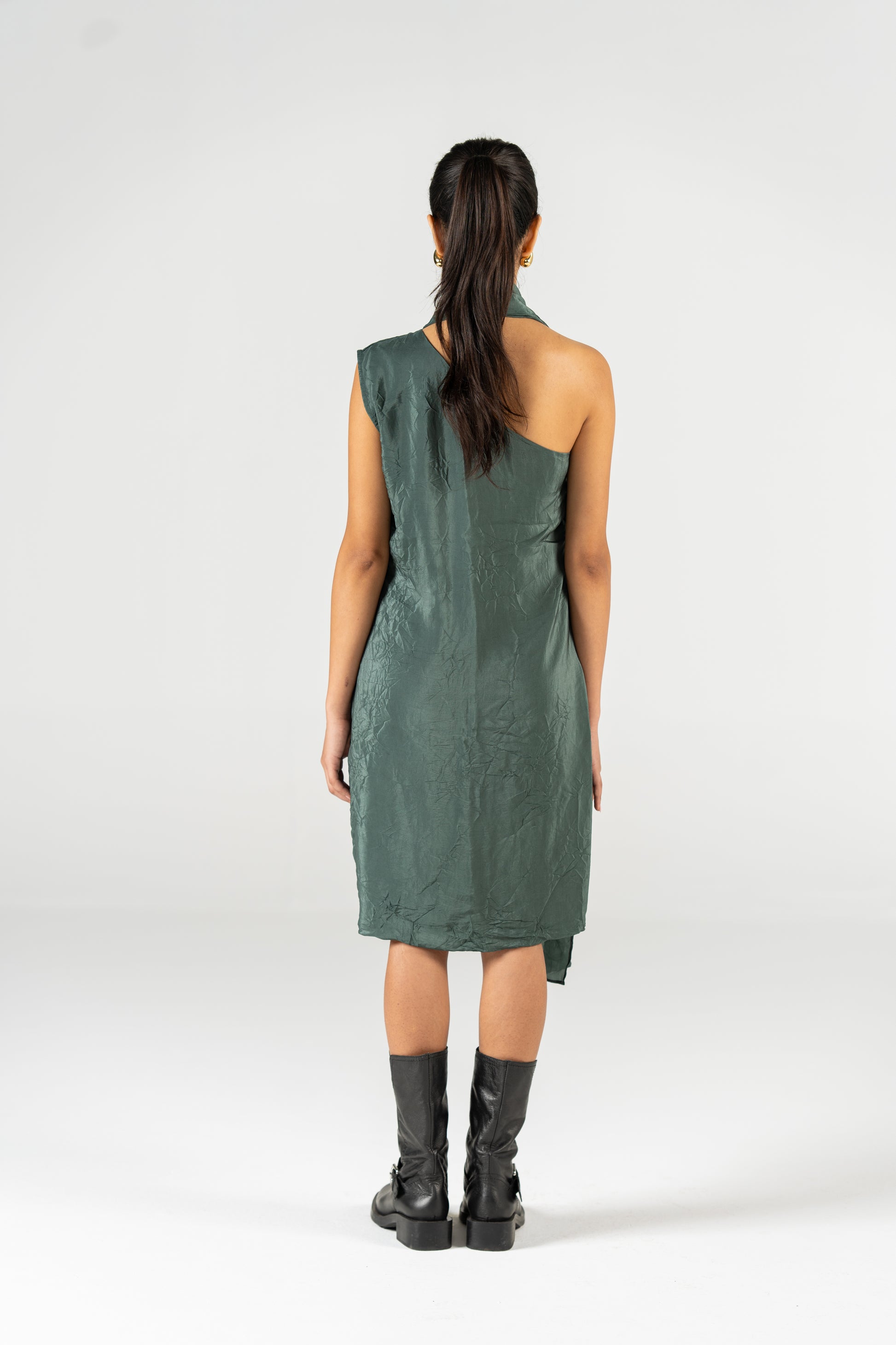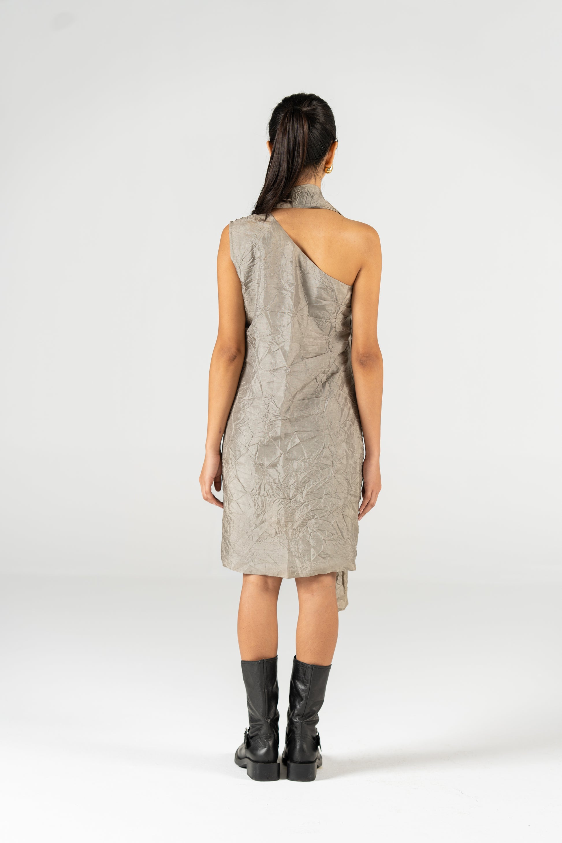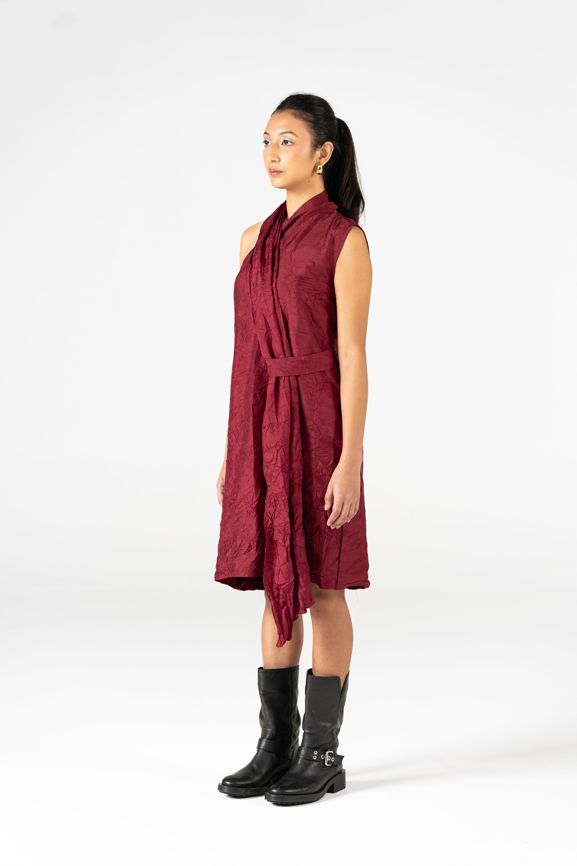 Statement Dress, allows the front bow to appear bigger or smaller when pulled by the hanging fabric adding detail to the outfit.